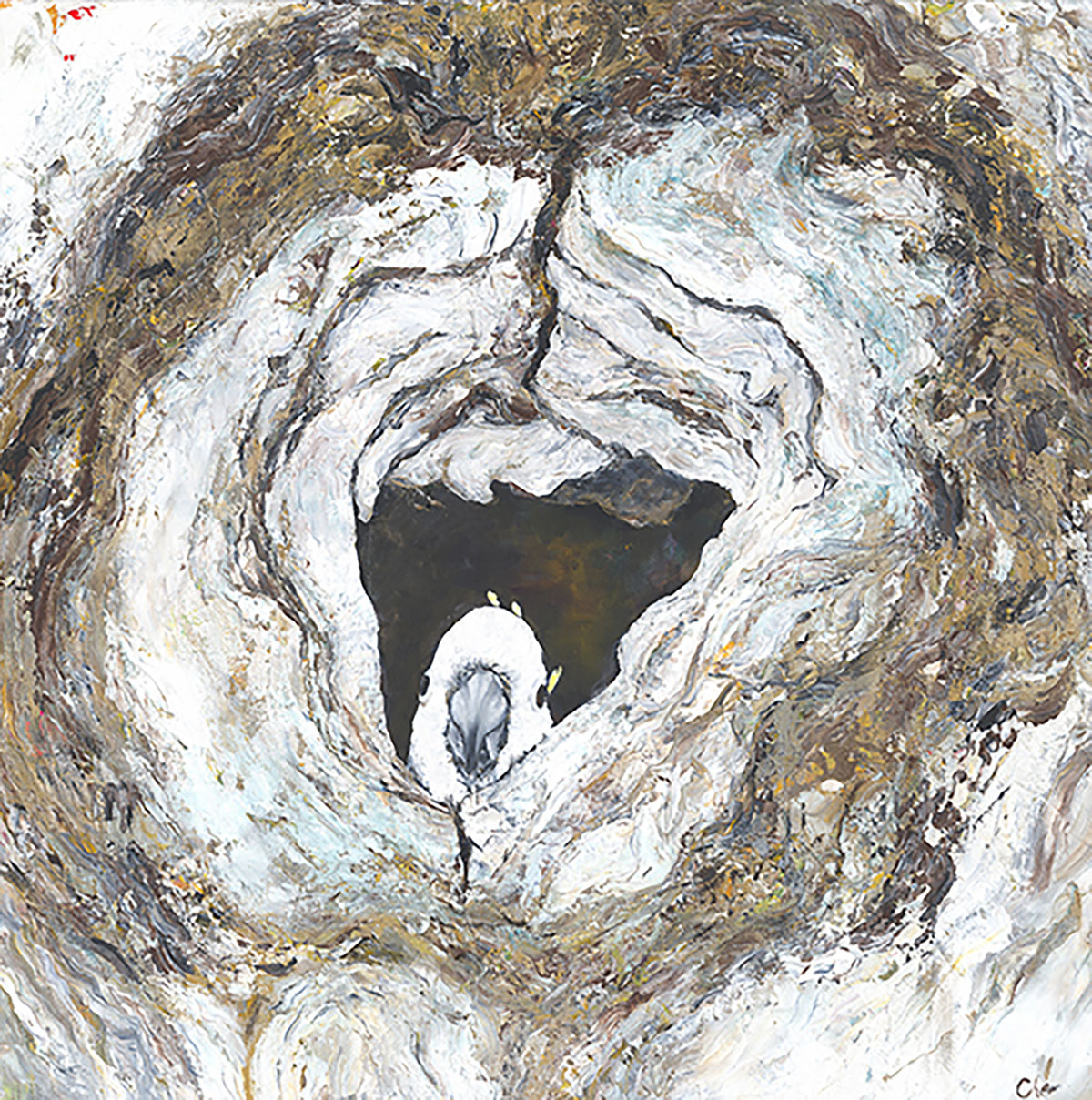 Curious, alert, and cradled within nature’s quiet architecture. Inspired by a photograph by Jon Steinbeck, this work captures a moment of innocence and reflection. Its form, open to interpretation, reminds us how deeply nature mirrors our own complexity, beauty, vulnerability, and instinct intertwined. Beneath its charm lies a quiet call for awareness: as land clearing expands, their homes diminish.