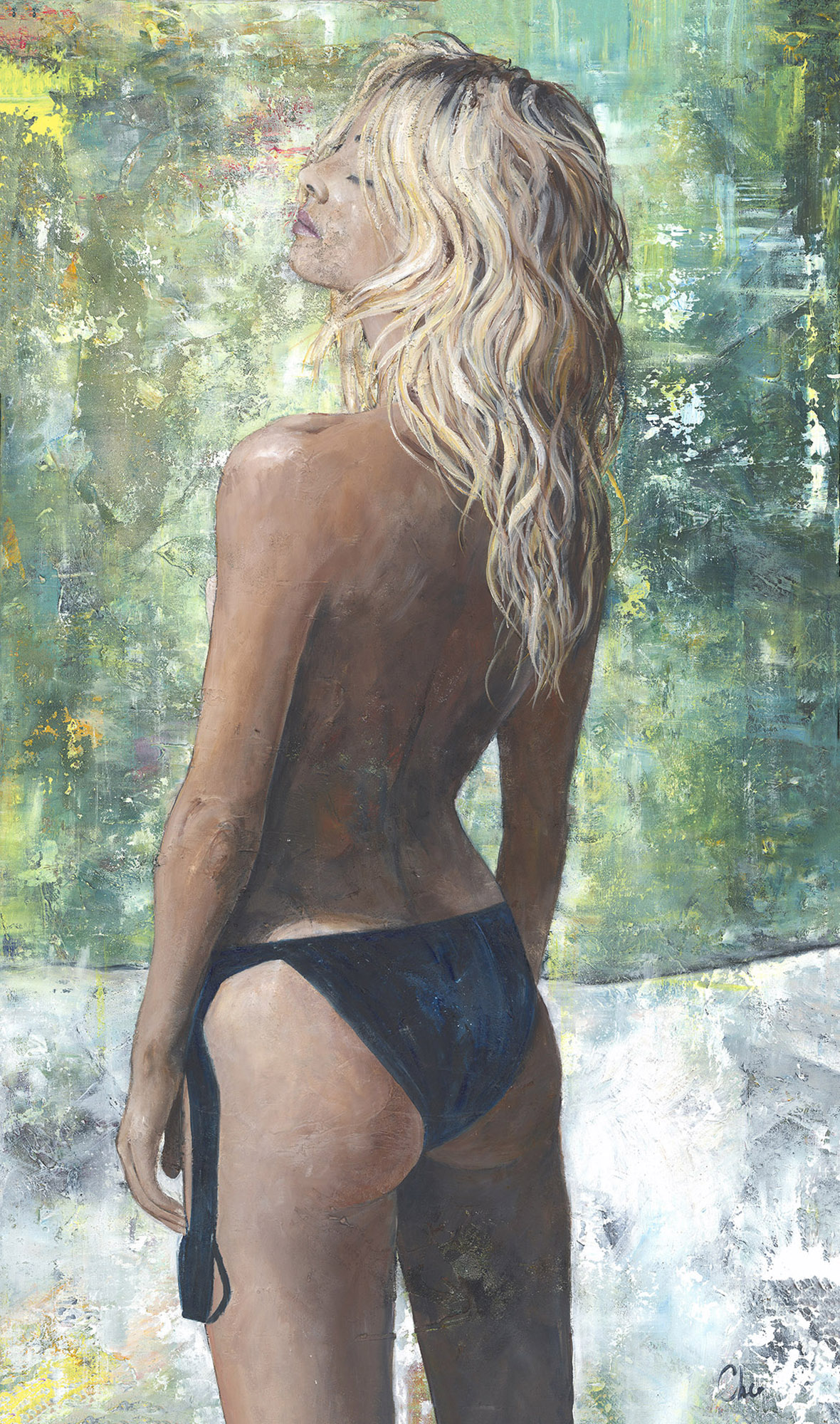 What began as two donkeys evolved into a sun-kissed, all-Australian beach girl. Bare, relaxed, and utterly at ease within herself. This piece captures the essence of growing up under the sun: salt on skin, stillness in breath, and the quiet freedom of feeling unbound. There is a strength in her softness, a familiarity that resonates. A simple, wordless, youthful ease that says everything.